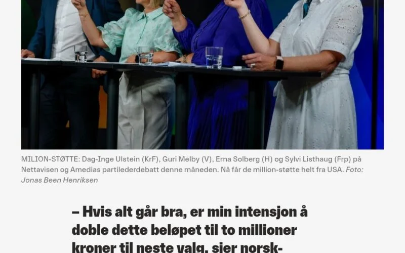 El aporte financiero, que equivale a 100.000 dólares estadounidenses, ha sido distribuido entre los partidos Conservador, del Progreso y Demócrata Cristiano. Una donación individual de