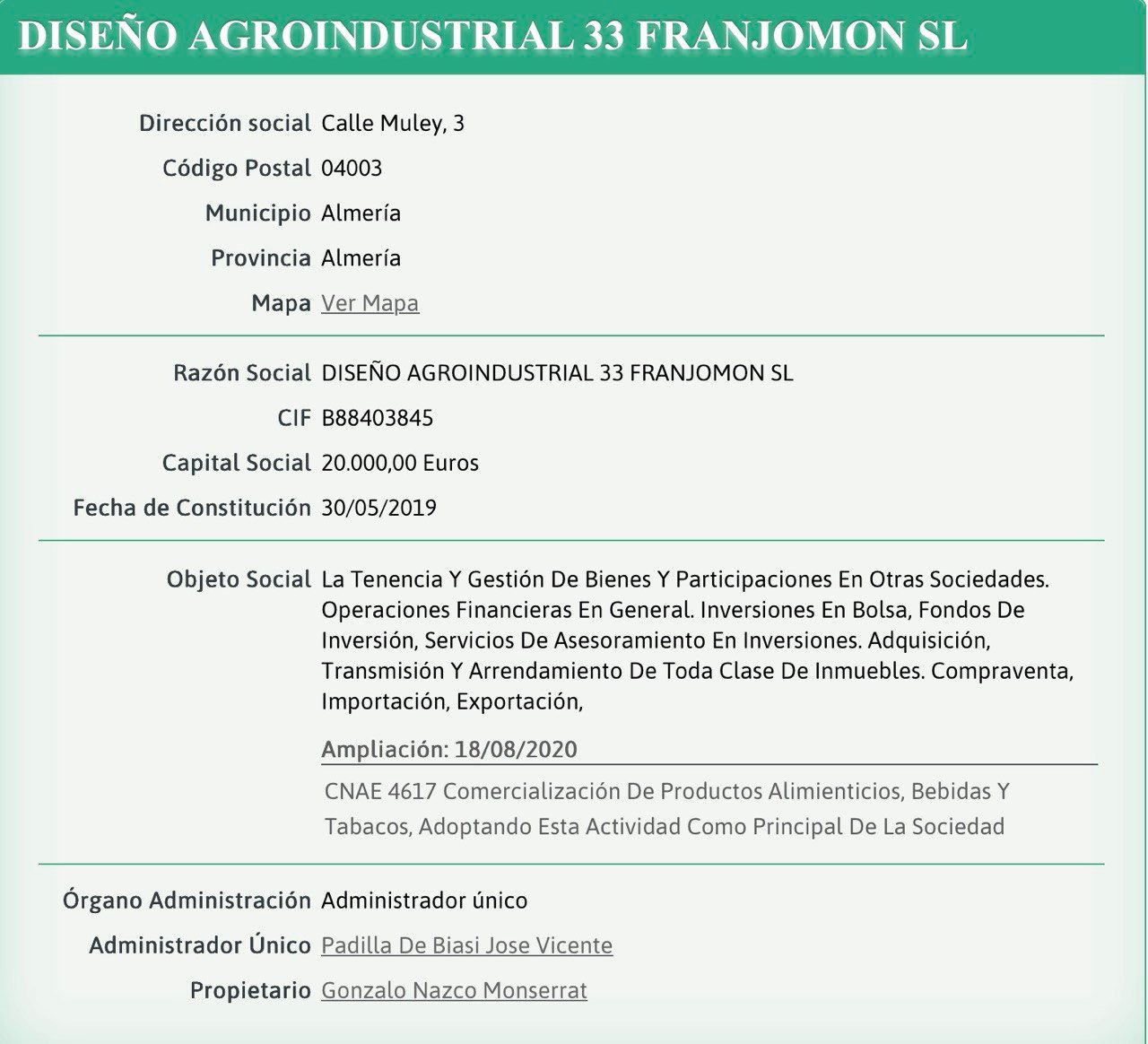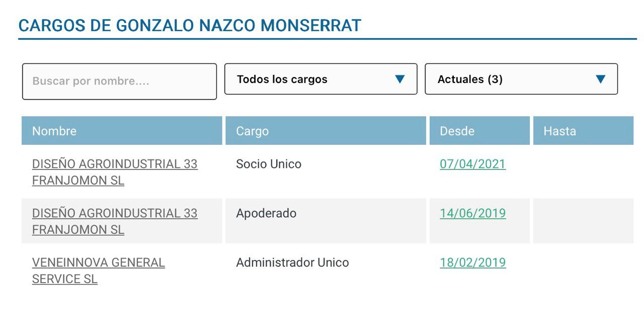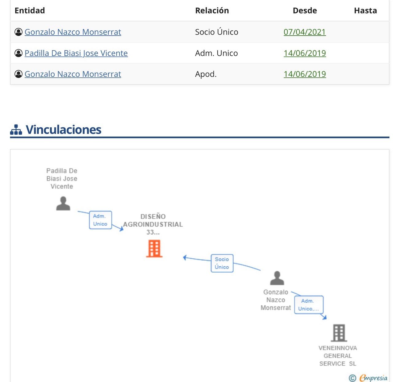 José Vicente Padilla De Biasi aparece vinculado, al menos, a dos empresas en España, junto a su cónyuge Monserrat Gonzalo Nazco.