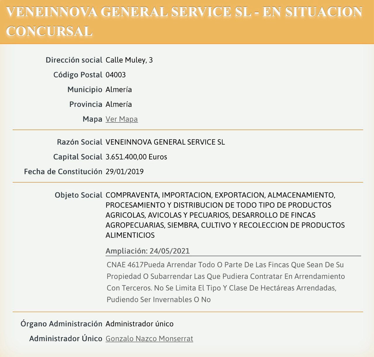 C/ Muley, 3, Bajo 2 — Edificio Puerta de Hierro (Almería) (esta dirección es inexacta y falsa).